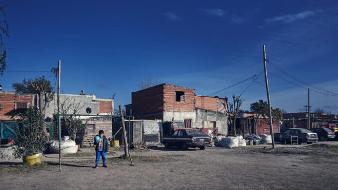 Cedió el pavimento y las ruedas traseras de un colectivo quedaron hundidas en un cráter