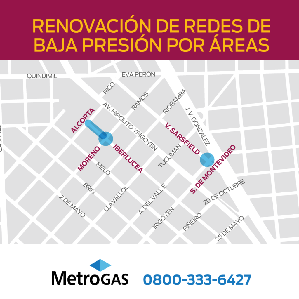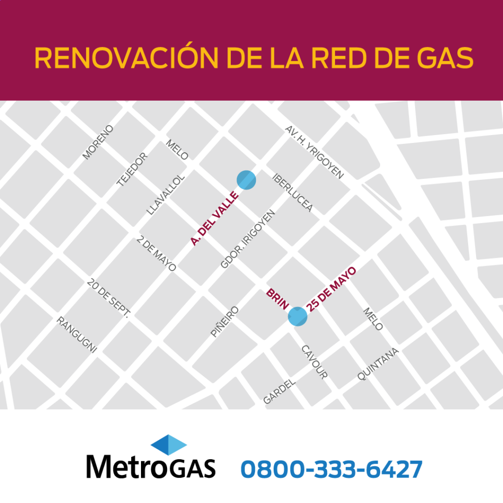 Metrogas, por otro lado, realizará trabajos en A. del Valle, entre Iberlucea y Melo, y 25 de Mayo, en el cruce con Ministro Brin. También se verá afectada la zona de Iberlucea, entre Moreno y Alcorta, y el cruce de Sitio de Montevideo y Vélez Sarsfield.
