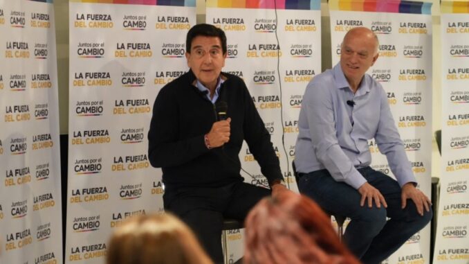 En la previa a la visita del economista, Grindetti compartió un almuerzo con empresarios en Ezeiza y luego, junto a Patricia Bullrich, estuvo en la localidad de Morón donde se reunieron con vecinos víctimas de la inseguridad en la zona y compartieron un encuentro con la militancia de Juntos por el Cambio.