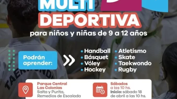 Lanús Gobierno informa que se encuentra abierta la inscripción para que los niños y las niñas del distrito, de 9 a 12 años, puedan aprender deportes en la Escuela Municipal Multideportiva en el Parque Central Las Colonias, ubicado en Salta y Purita en Remedios de Escalada. Las clases se desarrollarán todos los sábados a las 10 e iniciarán este sábado 18 de abril.
