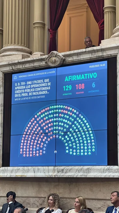 La Cámara de Diputados aprobó esta tarde con 129 votos el DNU sobre el acuerdo del Gobierno con el FMI, contra 108 votos negativos y seis abstenciones.