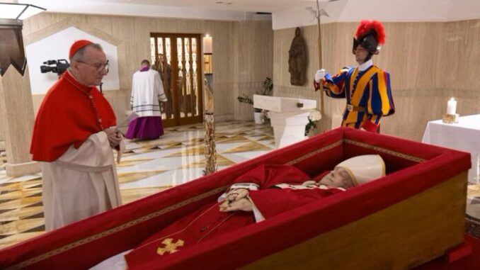 Finalmente, en el comunicado difundido esta mañana se indica que “en el Altar de la Confesión, el Cardenal Camarlengo presidirá la Liturgia de la Palabra, al final de la cual comenzarán las visitas al féretro del Romano Pontífice”.