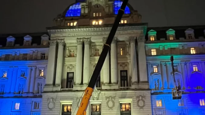 “Finalmente hoy se han concluido las modificaciones pendientes en la fachada del Palacio Libertad”, escribió el vocero presidencial, Manuel Adorni, junto a imágenes.