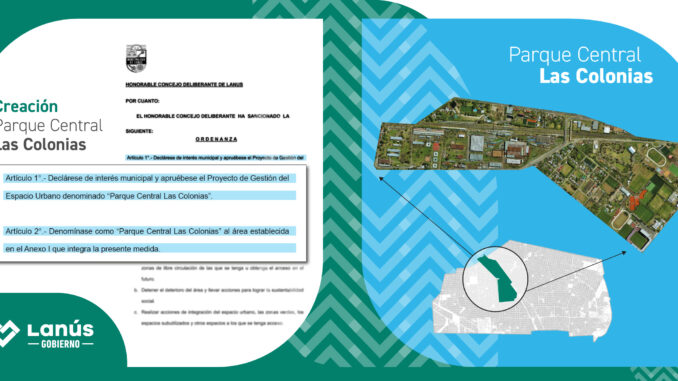 Lanús Gobierno presentó el proyecto para el desarrollo del “Parque Central Las Colonias», que fue aprobado por el Honorable Concejo Deliberante de Lanús bajo la ordenanza 89/24. El mismo, situado dentro de las localidades de Remedios de Escalada, Lanús Oeste y Lanús Este, funcionará como un gran pulmón verde que podrán disfrutar los vecinos y vecinas.