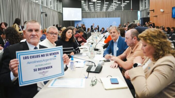 El debate en el plenario se dio con la presencia de funcionarios del gobierno –el vicejefe de Gabinete, José Rolandi y el secretario de Transporte, Flavio Mogetta- que defendieron la iniciativa, y con la oposición de los gremios del sector –pilotos, aeronaveantes, personal de apoyo en tierra- que se movilizaron al Congreso para manifestar su rechazo.