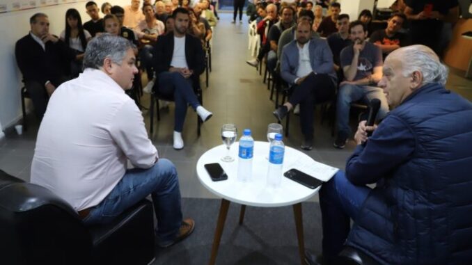 Acompañado del referente local y ex ministro provincial, Santiago López Medrano, Grindetti hizo un repaso de la situación política y económica de la provincia de Buenos Aires y sobre sus siete años como intendente de Lanús.