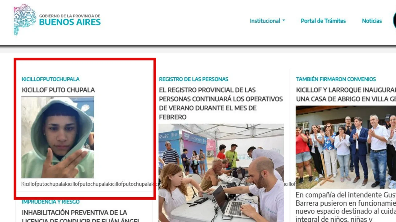 La página web oficial de la Provincia de Buenos Aires fue hackeada con una amenaza a Axel Kicillof y en la parte de Noticias se publicó una nota donde se expresan contra el Gobernador con la frase “puto chupala”, junto con la foto de un joven haciendo el gesto de un arma.