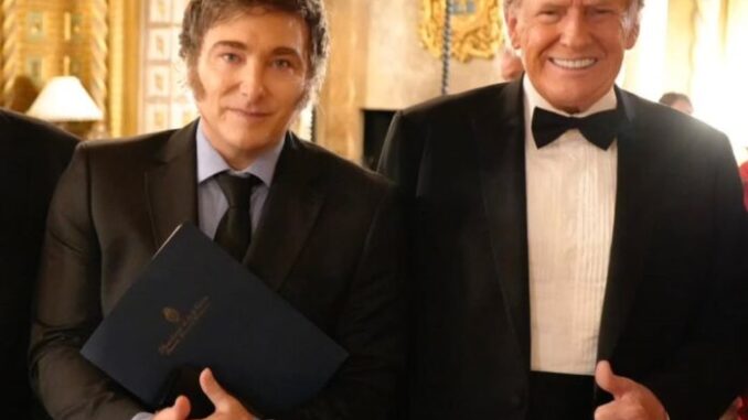 “Javier, me gustaría felicitarte por el trabajo que has hecho en Argentina. Tu trabajo es increíble. Hacer a la Argentina grande otra vez. El es una persona MAGA (por el movimiento trumpista Make America Great Again). Y sabe que está haciendo eso”, pronunció Trump sobre el presidente argentino.
