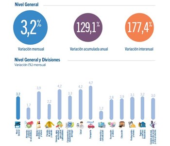 El IPCBA señaló que las divisiones Vivienda, agua, electricidad, gas y otros combustibles, Transporte, Salud, Restaurantes y hoteles, y Alimentos y bebidas no alcohólicas explicaron el 73,5% del alza general.
