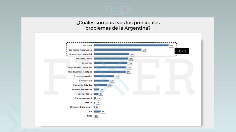 Según un estudio, la inflación es el principal problema. Le siguen la corrupción (40%) y la inseguridad (29%). Rodríguez Larreta tiene la mejor imagen.