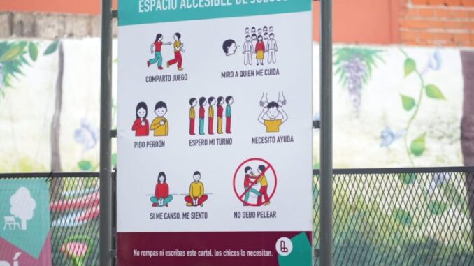 Lanús avanza en la puesta en valor del espacio público a través del Programa Plazas 23. Además de diversos trabajos de infraestructura, esta iniciativa incluye la incorporación de pictogramas dentro del área de juego para promover la Inclusión Social de las personas con algún Trastorno del Lenguaje de laComunidad.