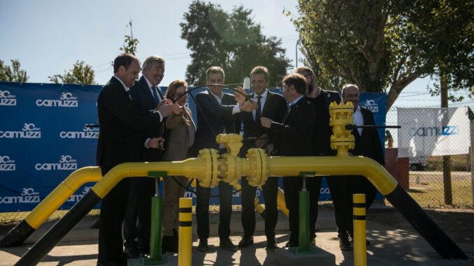 El ministro de Economía, Sergio Massa, y el gobernador de la provincia de Buenos Aires, Axel Kicillof, inauguraron este miércoles el Gasoducto de Alimentación que une las localidades de Trenque Lauquen y América, cuya red beneficiará a más de 1.000 vecinos de la zona.