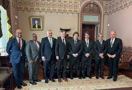 El cónclave, en el que también participó Juan González, consejero estadounidense de Seguridad Nacional para América Latina, duró una hora y acompañaron al líder de La Libertad Avanza su hermana, Karina Milei; el futuro jefe de Gabinete, Nicolás Posse; Luis «Toto» Caputo, quien se perfila como ministro de Economía; Gerardo Werthein, posible embajador en Estados Unidos; y Mark Stanley, actual representante de ese país en la Argentina.