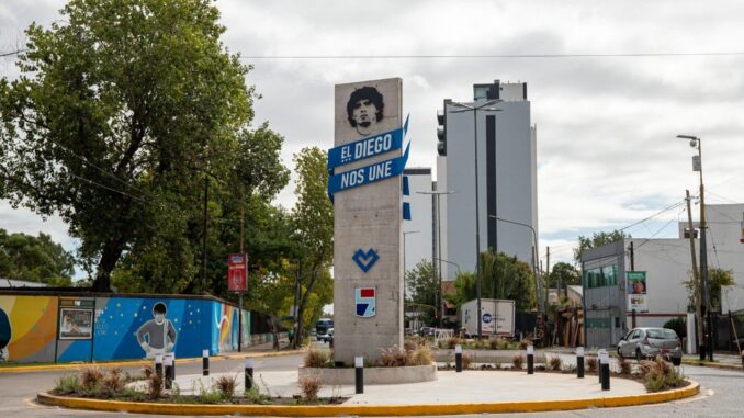 Otra de las significativas reformas consistió en el emplazamiento de un tótem que contiene la imagen del ídolo mundial del fútbol y oriundo de la ciudad, Diego Armando Maradona.