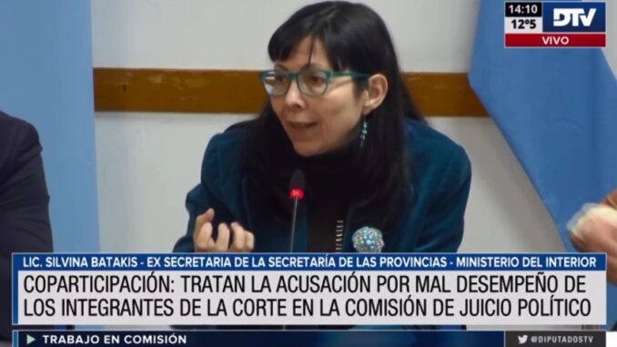 Para dar inicio a las testimoniales, en primer lugar, hizo uso de la palabra Batakis, actual titular del Banco Nación Argentina, quien explicó sobre los fondos de coparticipación a favor de la Ciudad que no encontraron ningún antecedente de los tres decretos de la gestión del ex presidente Mauricio Macri. En este sentido, criticó que “el primer decreto ni siquiera establece los motivos por los cuales se aumenta el porcentaje de 1,4 a 3.75”.